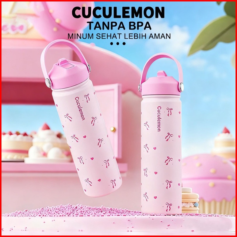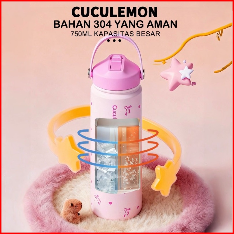 Cuculemon Tumblr Tahan Panas Dingin 24 Jam Stainless Botol Minum 750ml Termos Olahraga Aesthetic