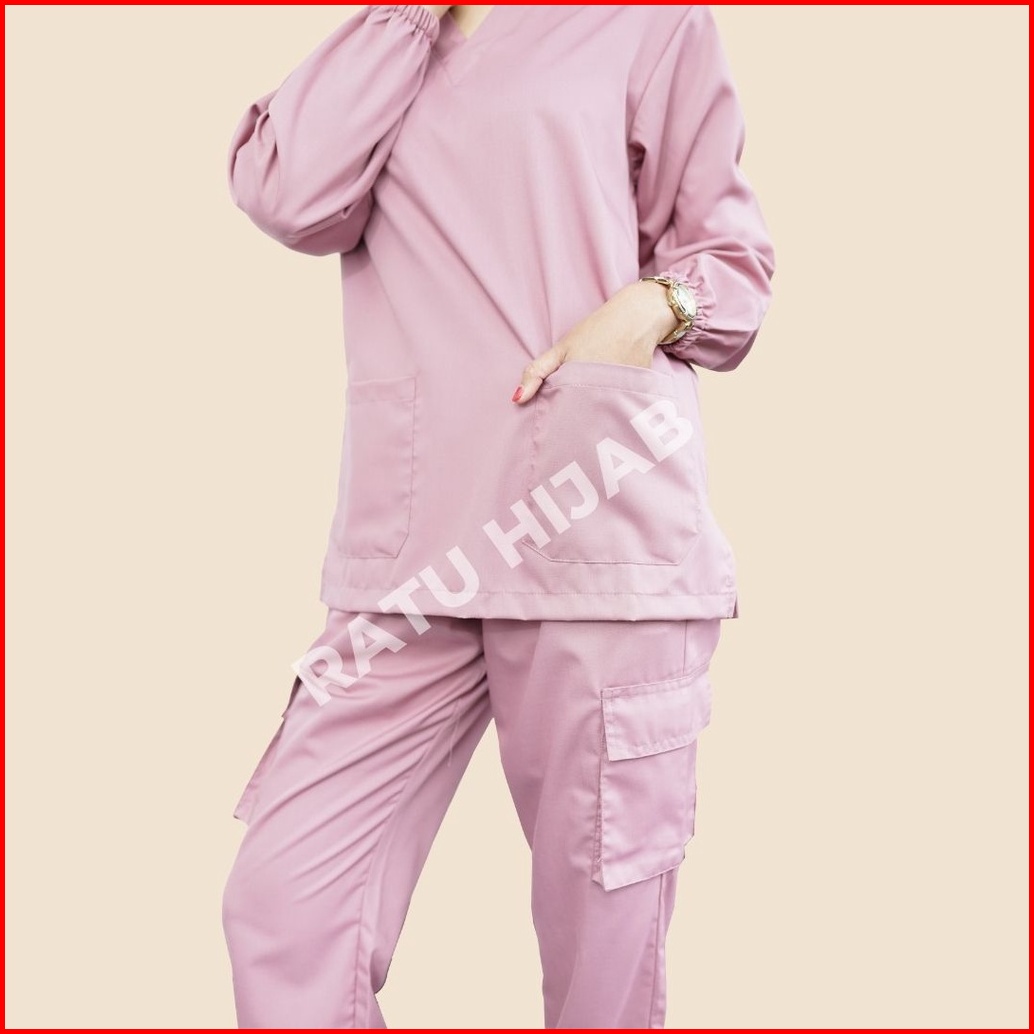 Baju Ok Oka Jogger Cargo Toyobo Jaga Dokter Scrub Medis Perawat Lengan Panjang Karet