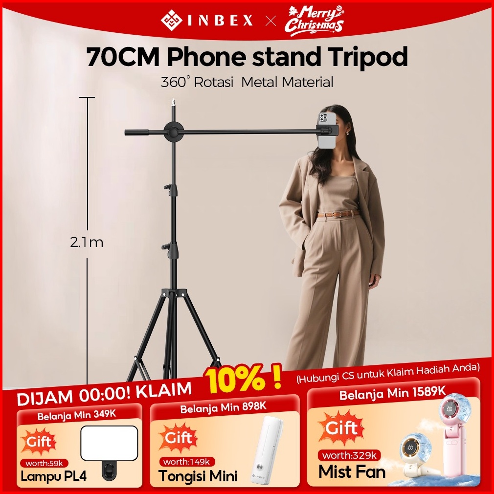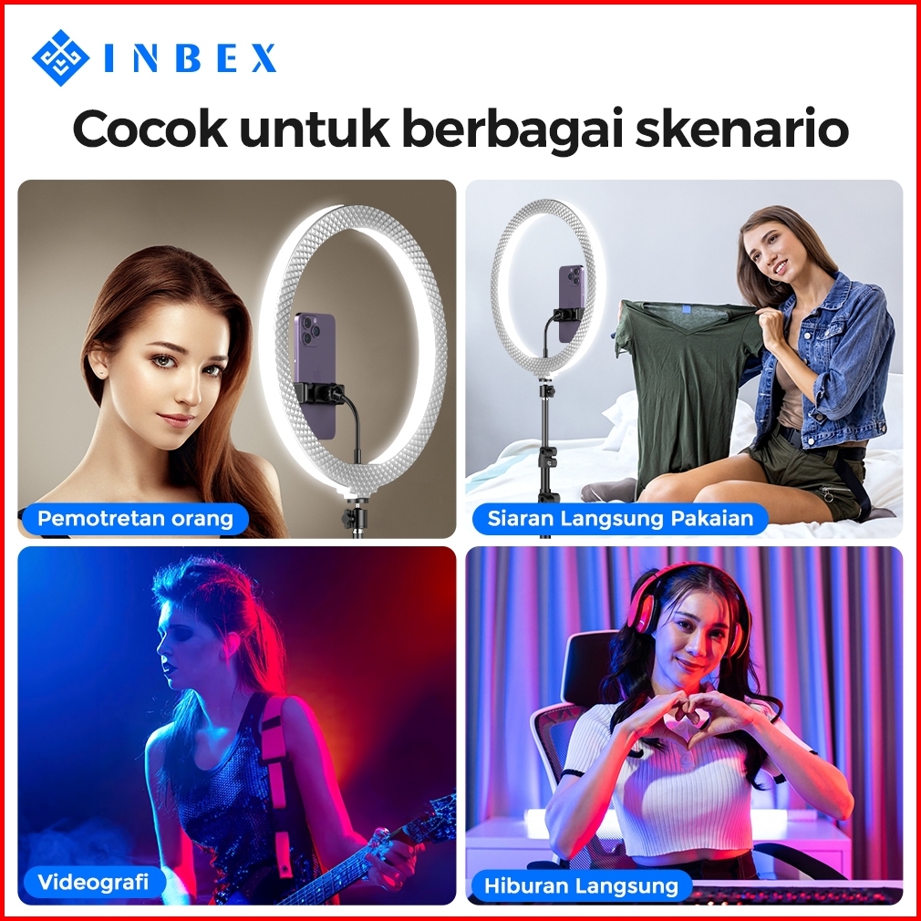 Inbex 70cm Overhead Phone Stand Holder 210cm Kamera Tripod Ring Light Konten Kreator 36cm Rgb Ringlight