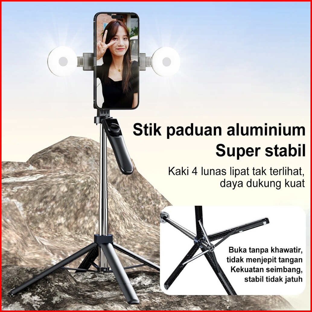 Dl Tripod Bluetooth Remote Tongsis 140cm Selfie Stick Lampu Bluetooth Selfie Stick 360