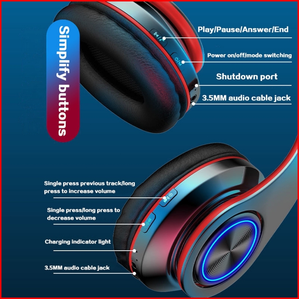B39 Headset Bluetooth Wireless Gaming Led Rgb Stereo Hi-fi Bass Kuat Headphone Bluetooth 5.3