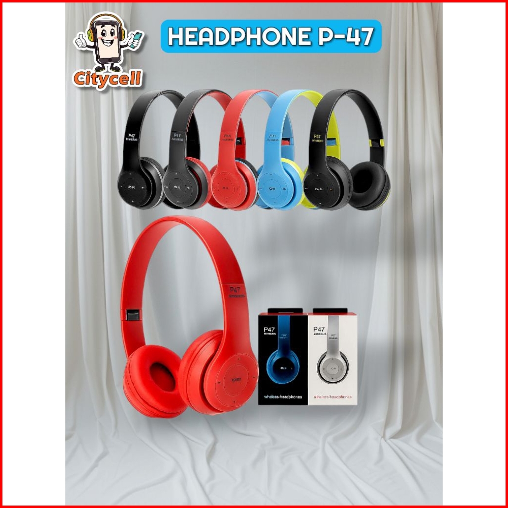 Headphone P47 Wireless Bluetooth Zoom Meeting Kerja Online P-47 Telepon Bluetooth Tanpa Kabel Aux