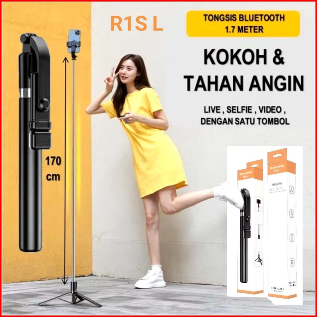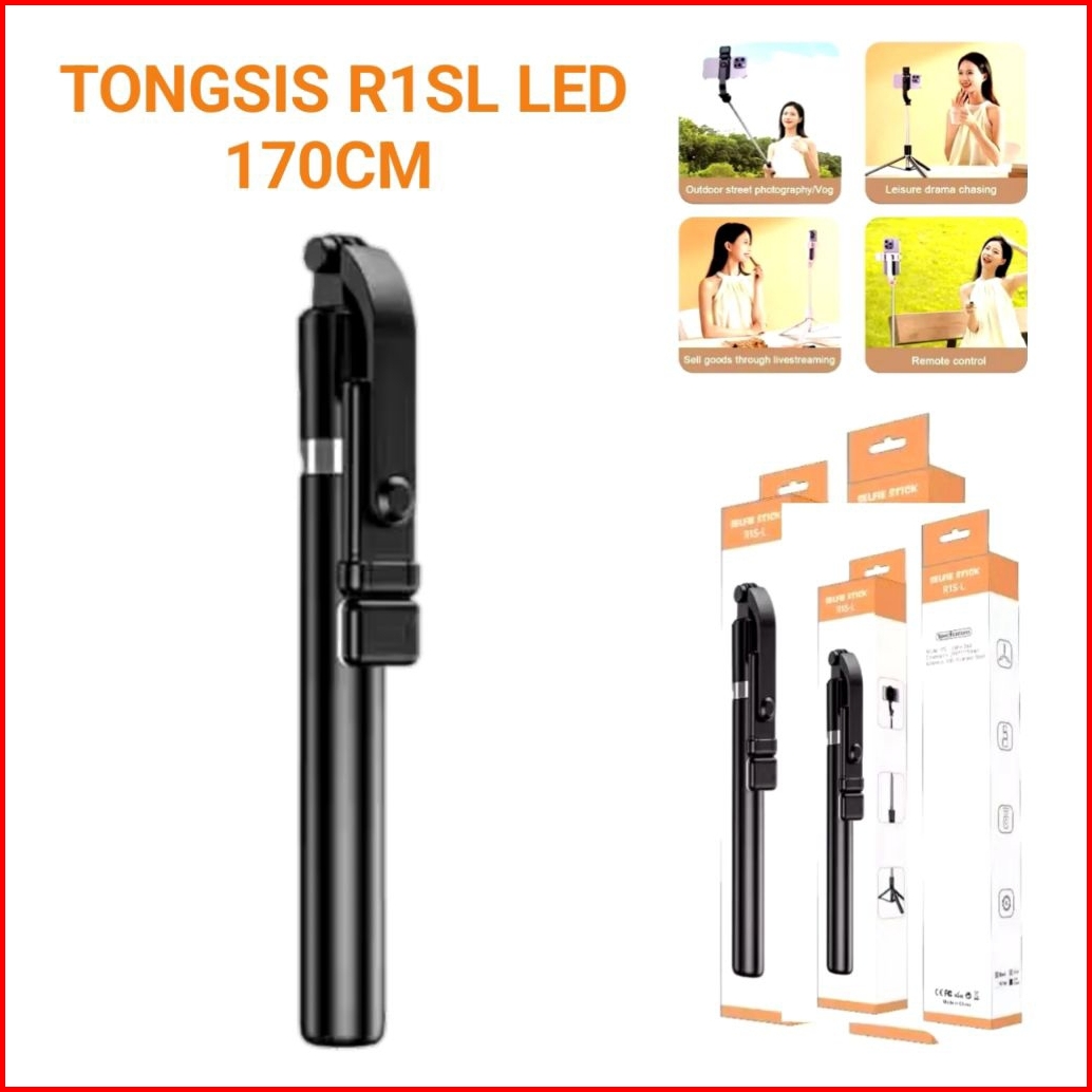 Tongsis Bluetooth R1s L 170cm Led Non Led 4in 1 Tongsis Tripod Remot Shutter Selfie Stick Rotation 36 Derajat Landcape P