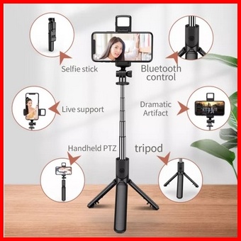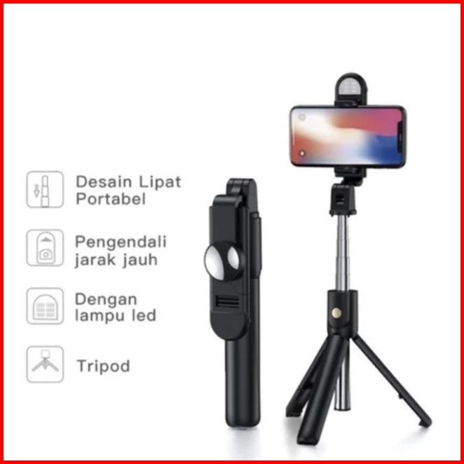 Tripod Tongsis Bluetooth Remote Selfie Stick Led Flash Tripod Hp Portable Rotatable Expandable