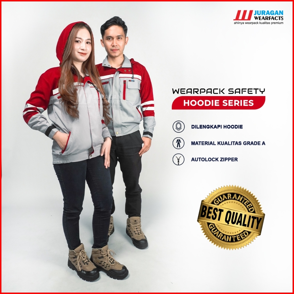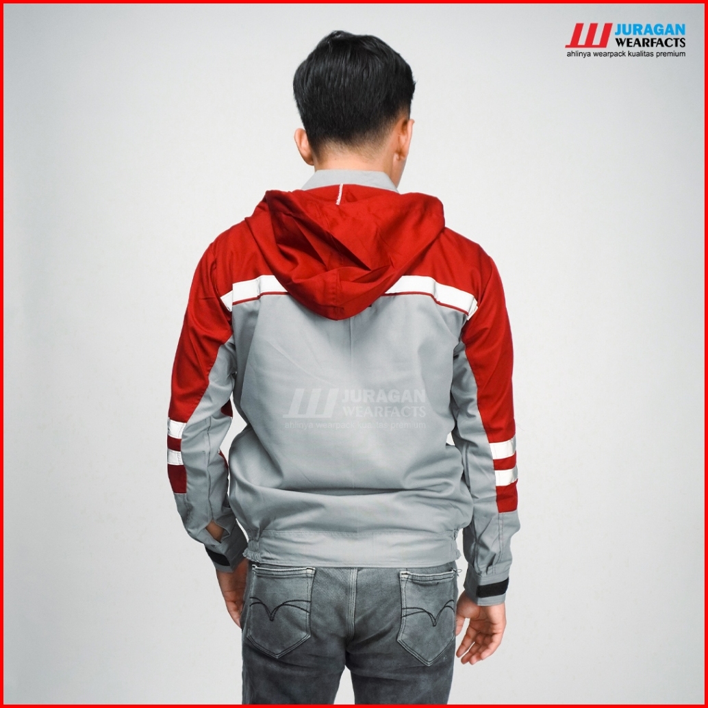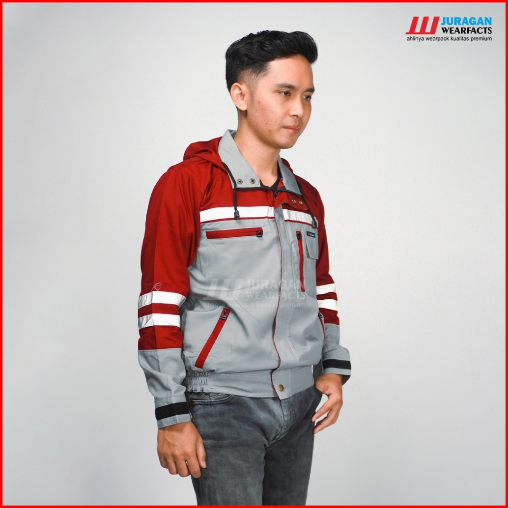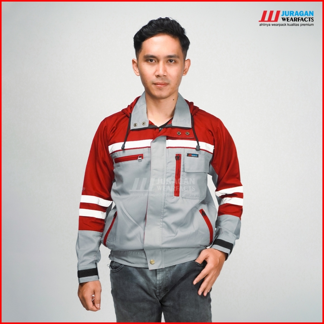 Juragan Wearfacts - Wearpack Kerja Segala Cuaca Warna Merah Maroon Kombinasi Abu