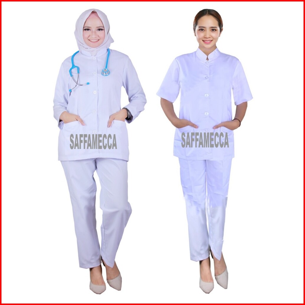 Baju Perawat Lengan Panjang Dan Lengan Pendek Seragam Perawat Dokter Medis Bidan Nakes Kusus Wanita