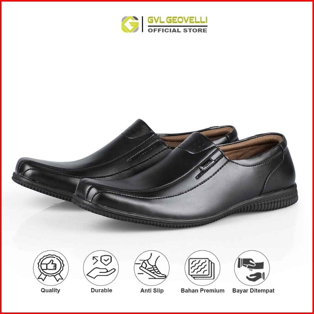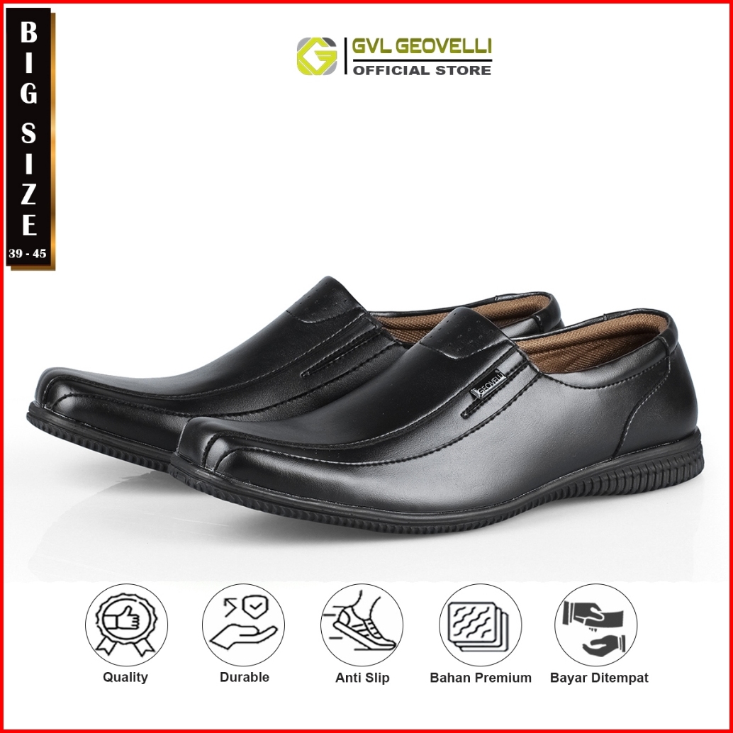Gvl Geovelli Big Size 39 - 45 Full Black I Sepatu Pantope Pria Formal Kerja Kantor