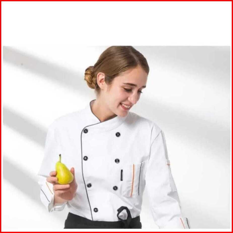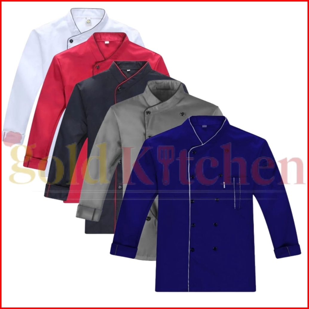 Kemeja Kerja Baju Koki Chef Jacket Lengan Panjang Pria Wanita Bahan American Drill Kitchen