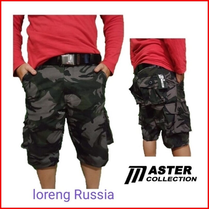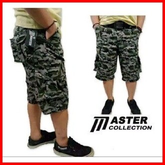 Celana Pendek Cargo Loreng Pria Katun Twill