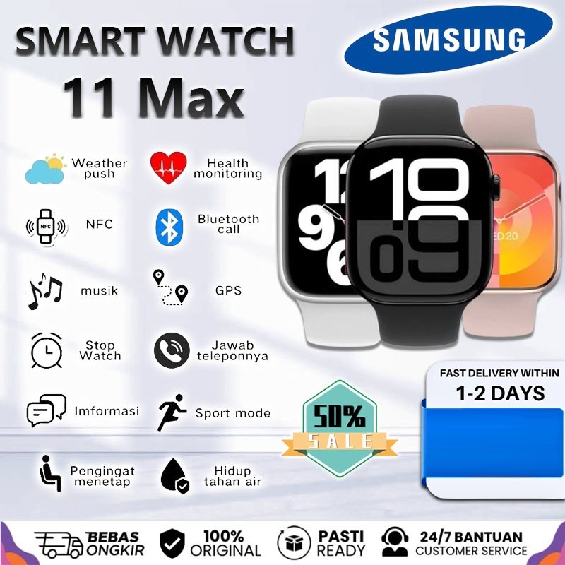 [TANPA DP] SMARTWATCH SAMSUNG 11 MAX Garansi Resmi 1 Tahun Smartband Xiaomi Iwo Huawei Itel Advan Iphone Aolon Infinix