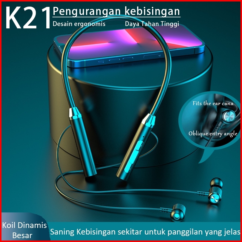 Headset Bluetooth Sport Stereo Tws K21 Gantung Di Leher Dengan Mikrofon Earphone Hanging Neck