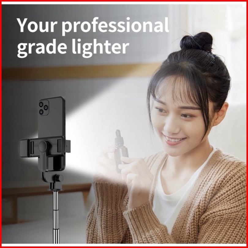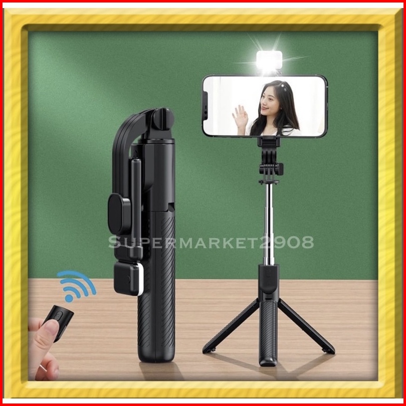 Tongsis Bluetooth Led R1s 3in1 Remote Selfie Stick Tripod 360