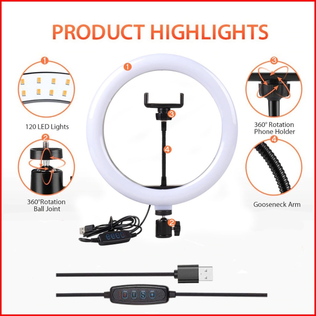 Paket Komplit Vlogger Make Up Ring Light Led 20cm 26cm 32cm Holder Hp Free Tripod 2.1m Lampu Led Selfie Video