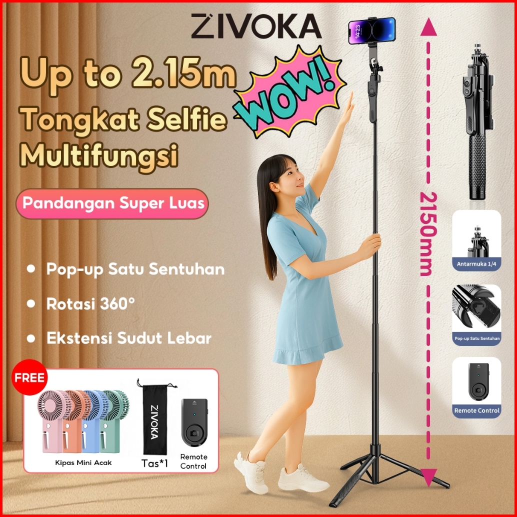 Zivoka Zt06 Tongkat Selfie Tripod Bluetooth Paduan Aluminium Tripod 2 15m Tongkat Selfie Portabel Dengan Lampu Pengisi C