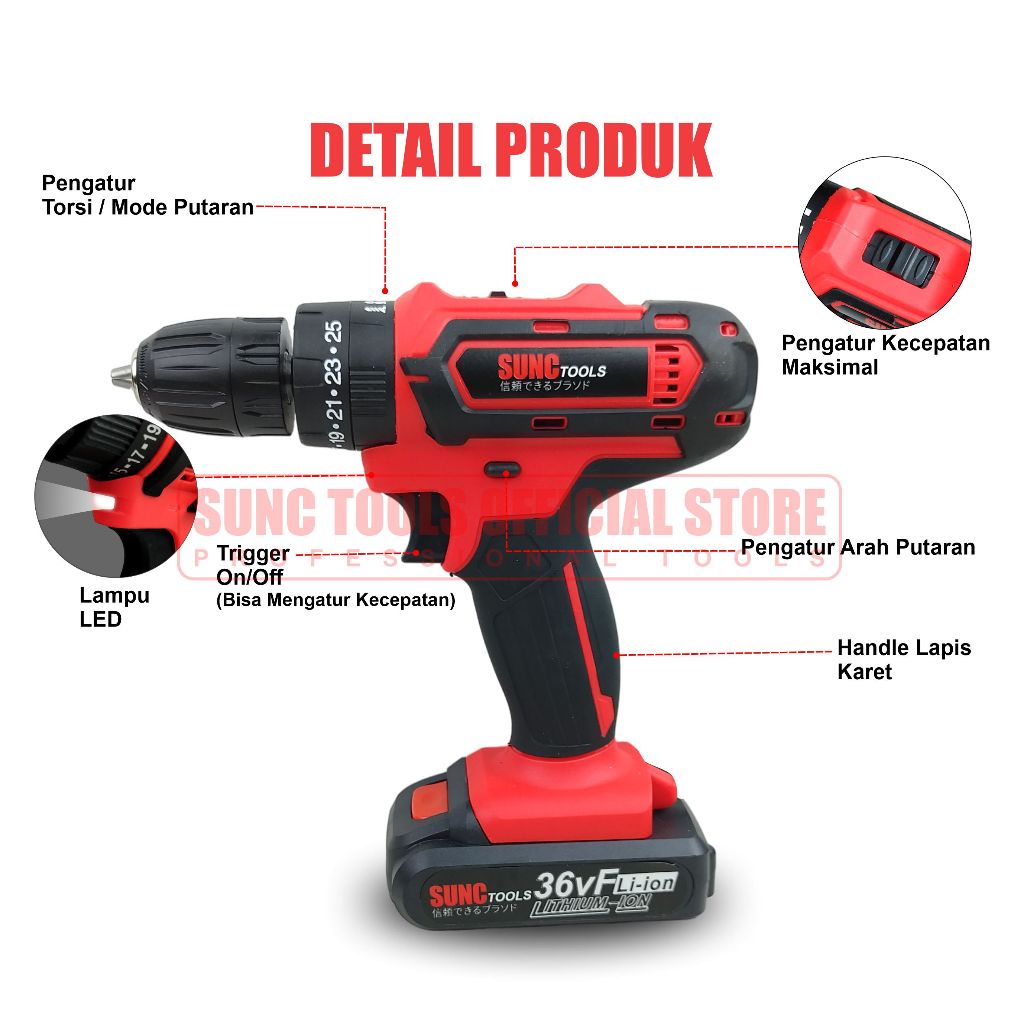 SUNC TOOLS Cordless Drill Mesin Bor Baterai Bor Batere 36V 36VF