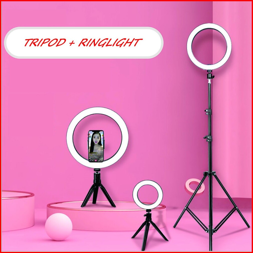 Paket Tripod 1 Meter 3120 Ringlight 26 Cm Kombo Hemat Tripod Dan Ringlight Mua Kamera Handphone Dlsr Fotografi Photoshoo