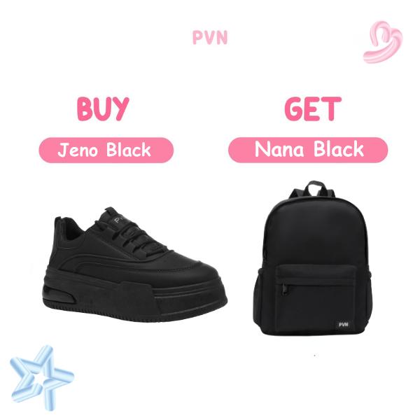 Pvn Jeno Back To School Sneakers Sepatu Sekolah Hitam Polos Wanita Black Collection - Jeno Black + Nana Black, 35