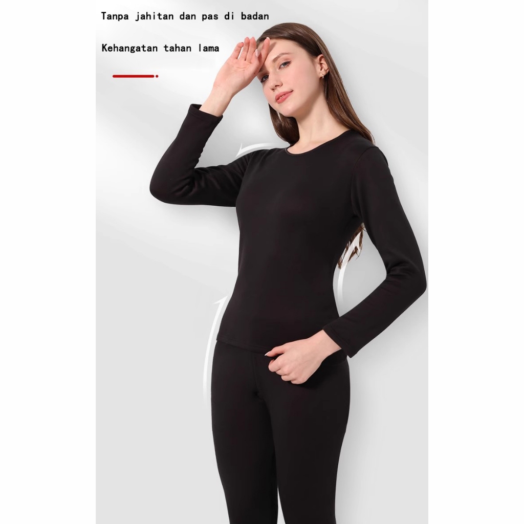 Set Thermal Couple Pria Wanita Baju Dalam Hangat Fleece Tebal Elastis Lembut Anti Dingin Longjohn Musim Dingin