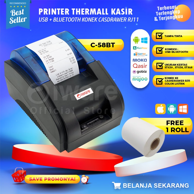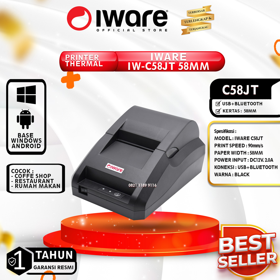 PRINTER KASIR/PPOB THERMAL 58MM IWARE C-58BT 58XS PI-58 ANDROID (USB+BLUETOOTH+RJ11)