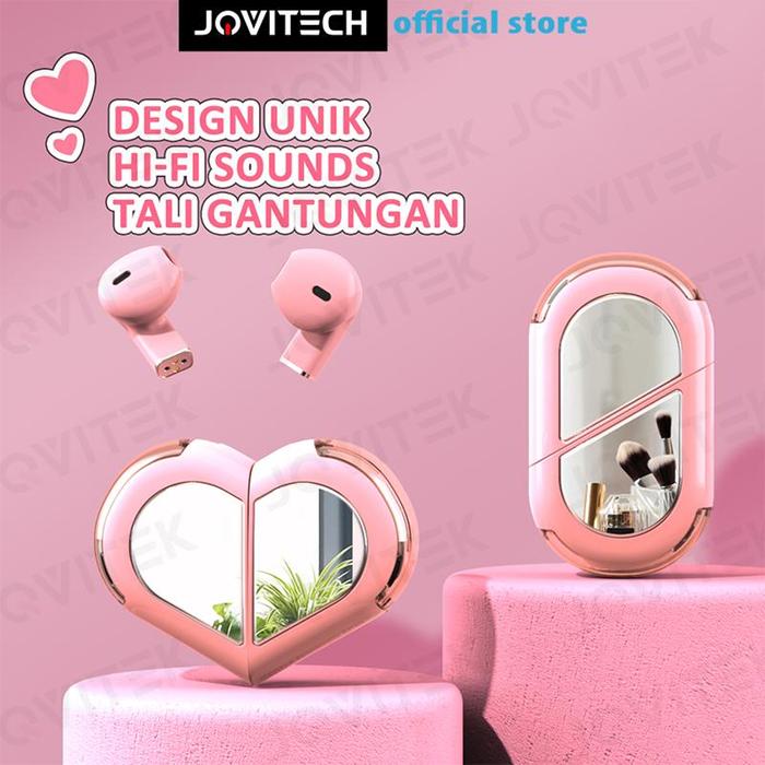 【】Jovitech New Design Two Ways Model Earphone Headset Bluetooth Ep39 Loves Heart Pink Touch Control Hi-Fi Sounds - Ep39