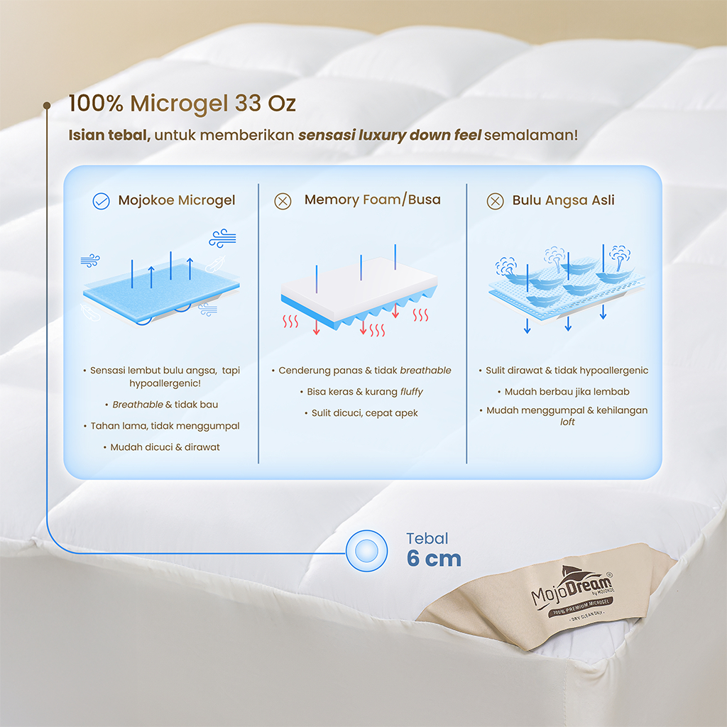 MOJOKOE Hotel Bed Mattress (Matras) Topper Fitted -Size Queen | 100 PERSEN Microgel
