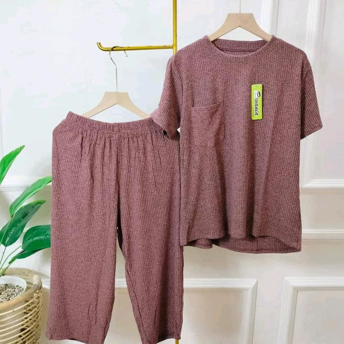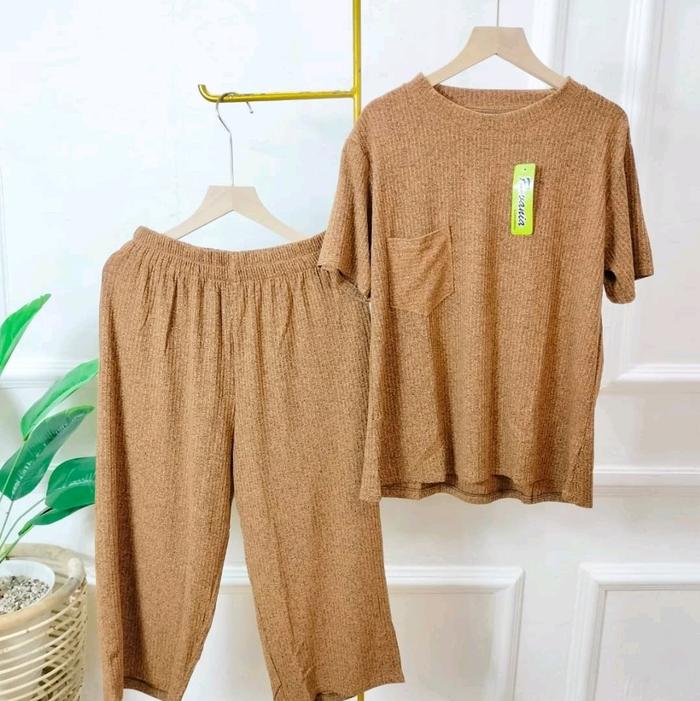 One Set Knit Impor Oversize || Stelan Celana Knit Jumbo 7/8 Baju Wanita Lembut Nyaman Setelan Knit Import Premium One