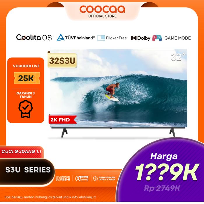[Exclusive - Putra Siregar] Tv Coocaa S3U 32Inch Smart Tv - Os Coolita - Hd - Bazel Less - Dolby Audio - Browser/Youtube
