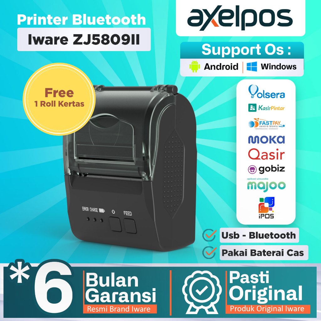 Axelpos Mini Printer Bluetooth Thermal Kasir 58mm Iware ZJ5809II