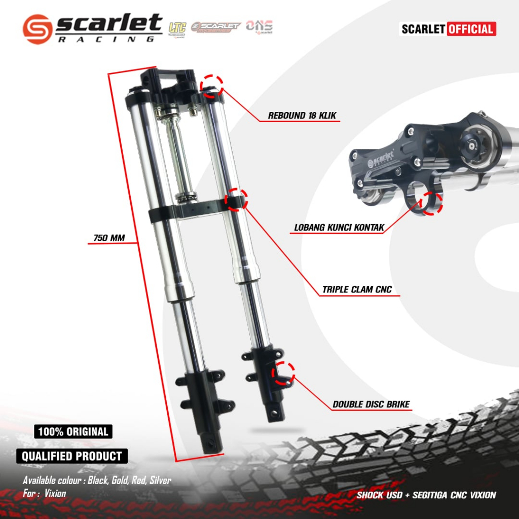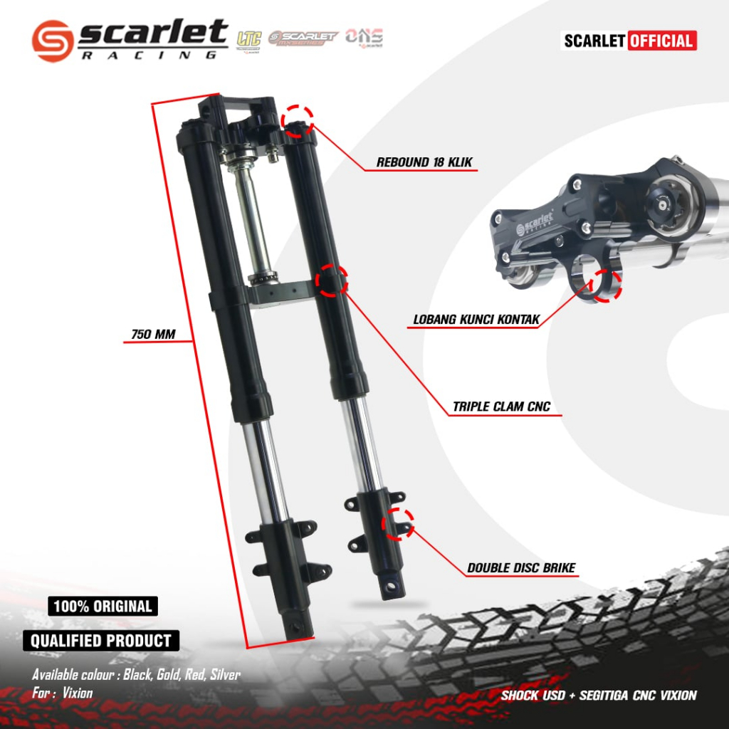 Scarlet Racing - Shock Upside Down Skok Depan Usd + Segitiga Cnc Vixion