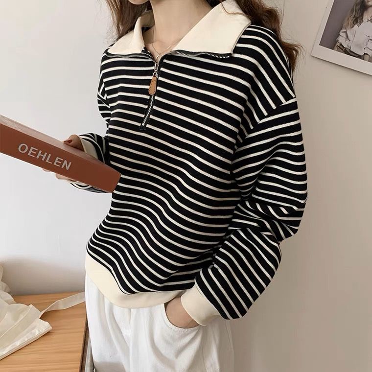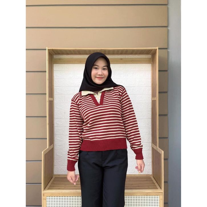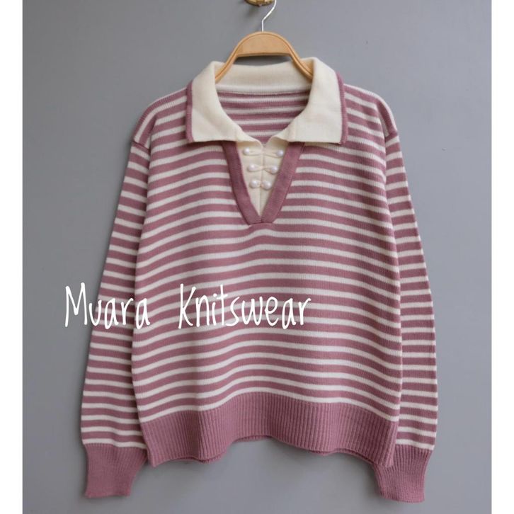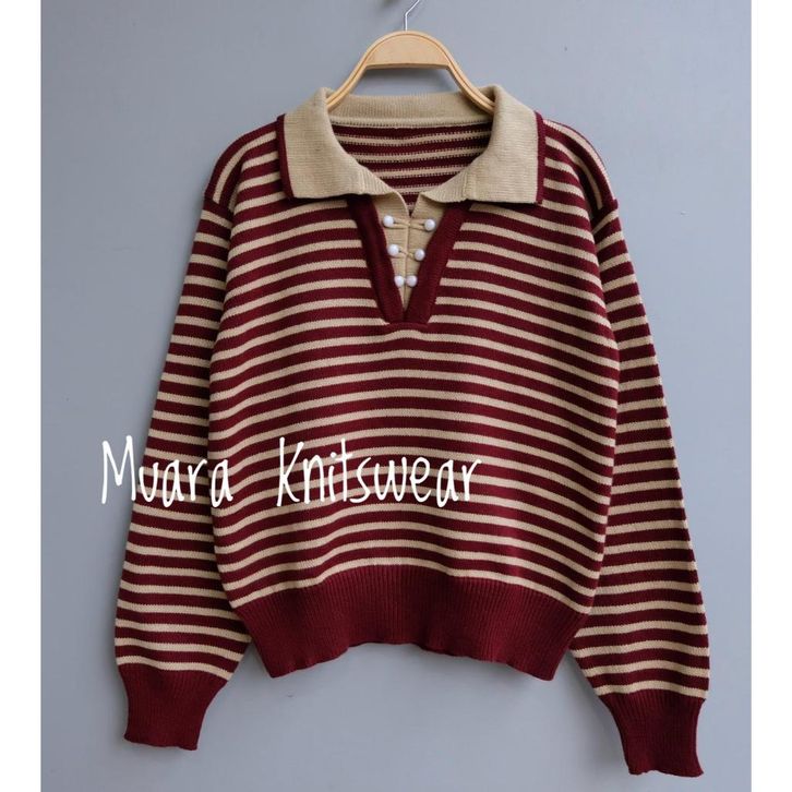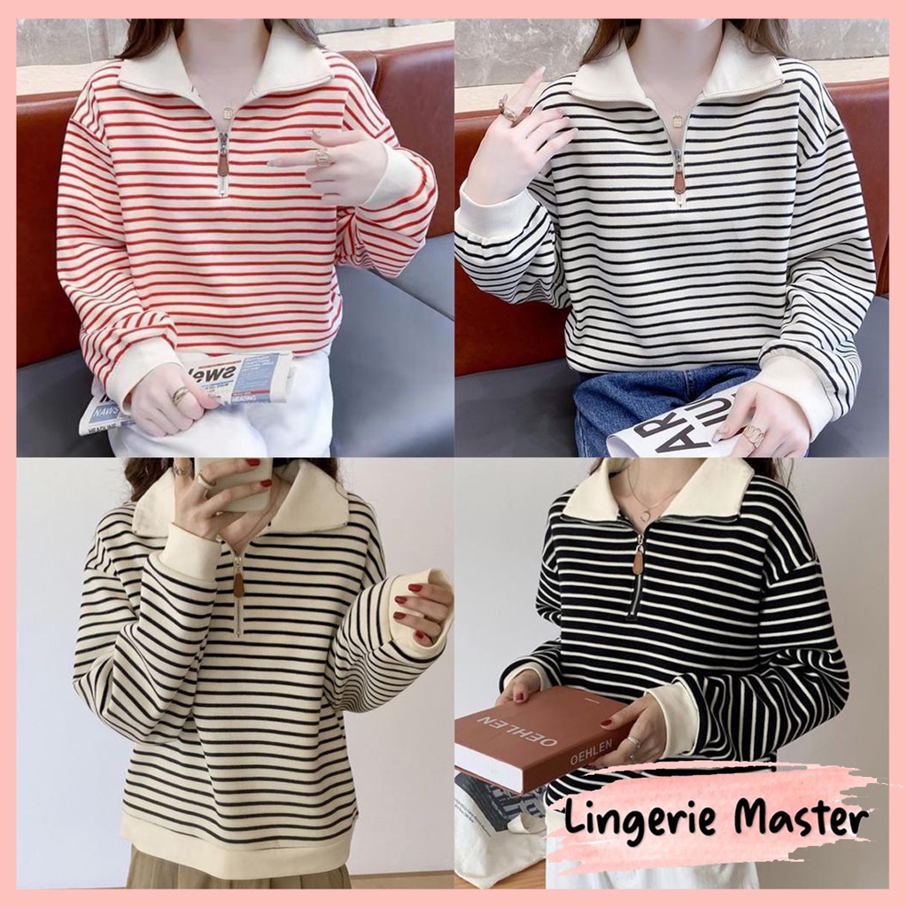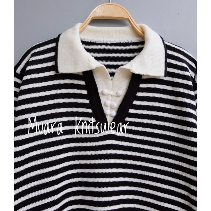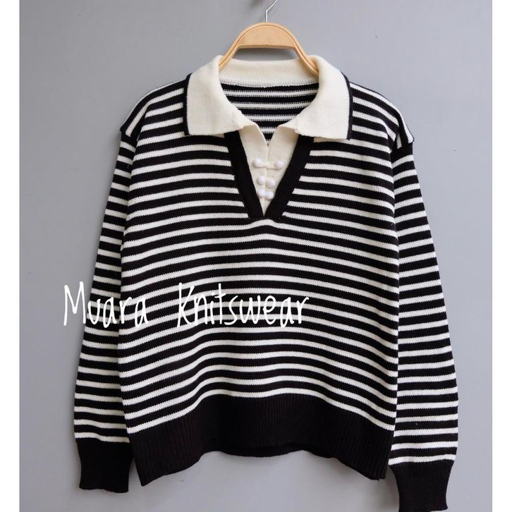 KNITWEAR KAOS SWEATER KERA WANITA LENGAN PANJANG ZIP RAJUT WARNA APRICOT HITAM PUTIH MODEL SALUR