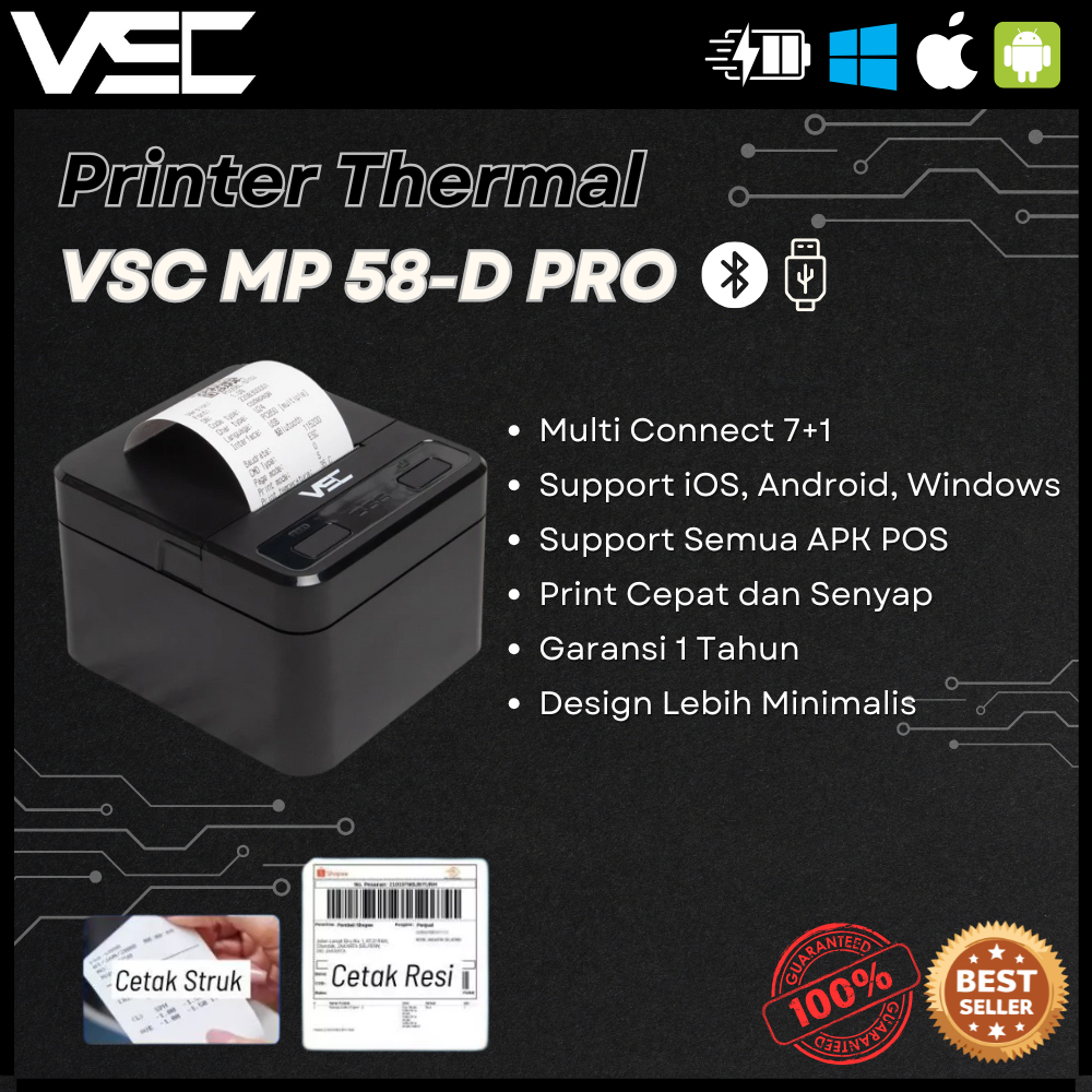 PRINTER BLUETOOTH VSC TM-58D PRO THERMAL PRINTER - RJ 11 - Putih - Hitam