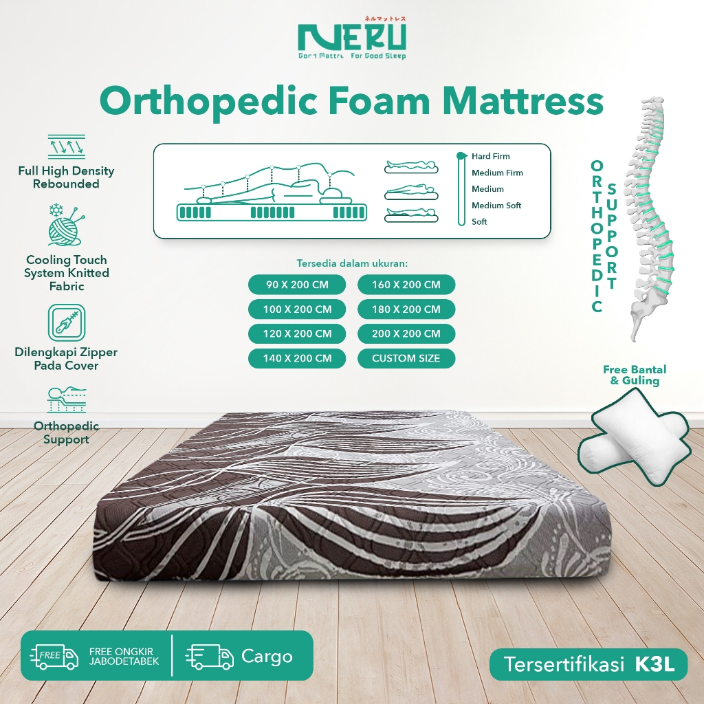 NERU KASUR KESEHATAN TULANG BELAKANG TEBAL 20CM ( ORTHOPEDIC MATTRESS )