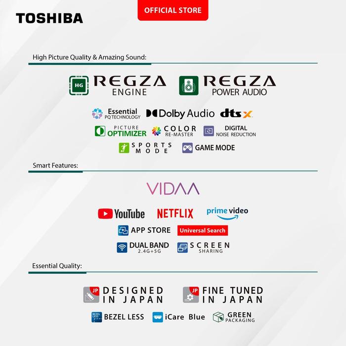 [Toshiba X Kohcun] [Khusus Online] Toshiba Tv 32" Hd Smart Tv-Wifi-Dolby Audio-Digital Tv--Screen Sharing-Youtube-Netfli