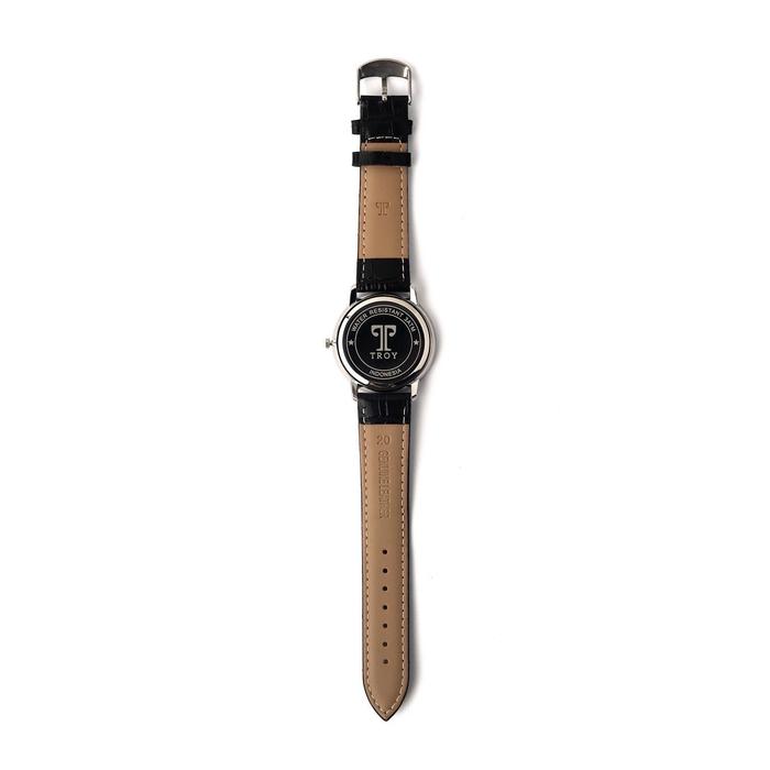 Troy Jam Tangan Pria Eleanor Stainless Steel Kulit Sapi Asli Quartz Old Money Elegan Mewah Simpel - Putih - Tali Hitam