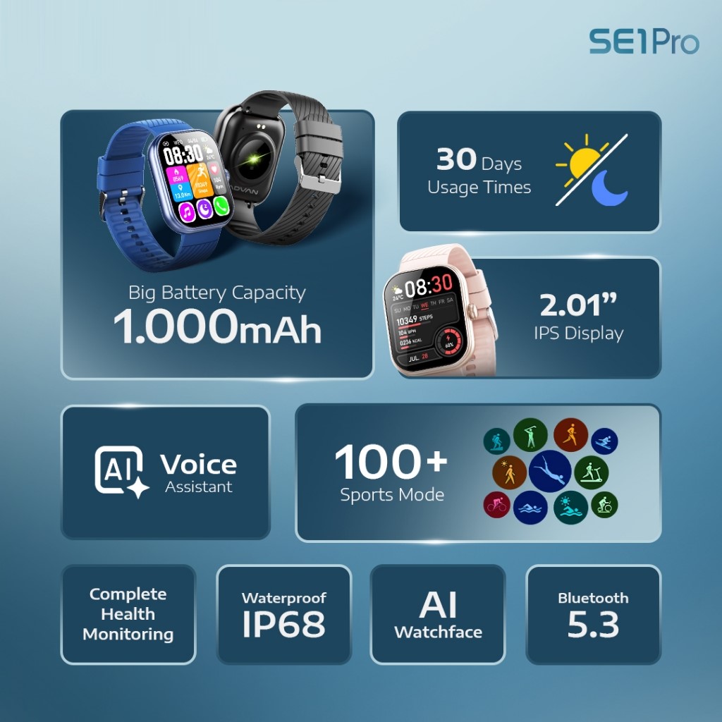 SmartWatch ADVAN SE1 Pro Baterai 1000mAh Tahan 30 Hari Bluetooth Call AI Watch Face Call xiaomi huawei band bestseller