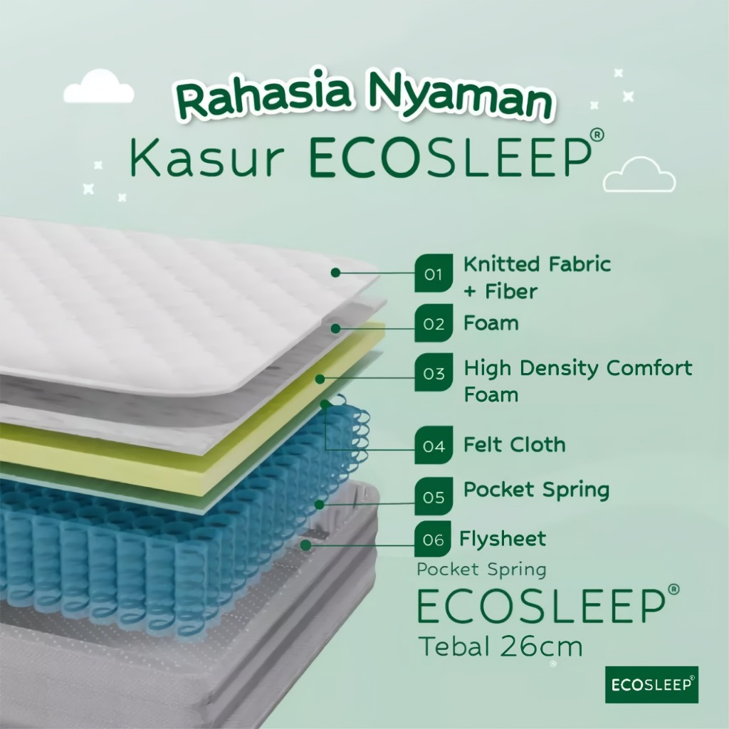 ECOSLEEP SBY POCKET SPRING BED 26 CM | GOOD SLEEP WITH ECOSLEEP | MATRAS RANJANG KAMAR TIDUR