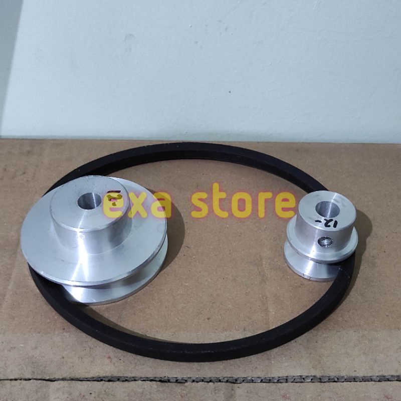 Pulley transmisi 3" dan 1.5" plus fanbelt pulley jalur A1 alumunium