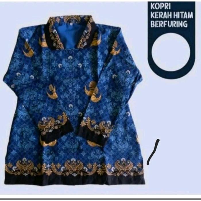 Batik Korpri Pria Dan Wanita Berlapis Furing Full Baju Cowok Katun Cewek Kerah Hitam Panjang Kain Tangan Krah Hitam