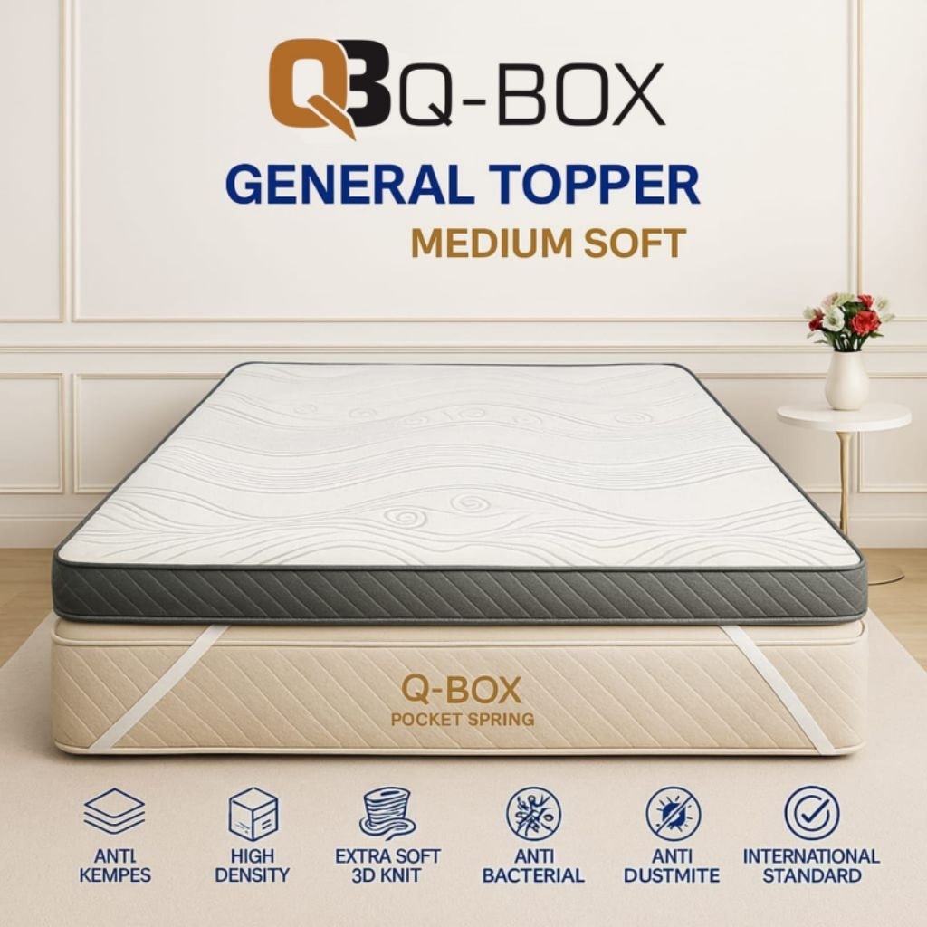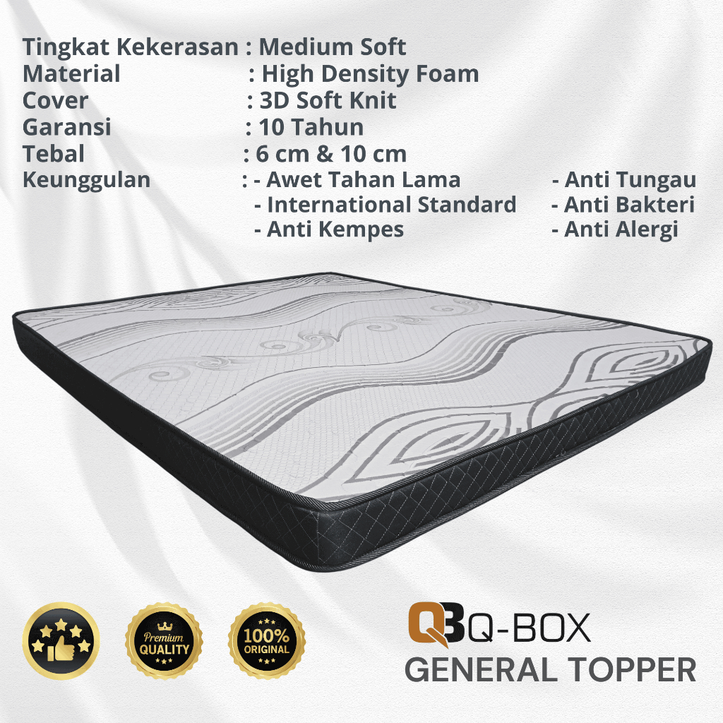 QBOX GENERAL TOPPER – Medium Soft, High Density Foam, Garansi 10 Tahun, Awet Tahan Lama, Alas Kasur