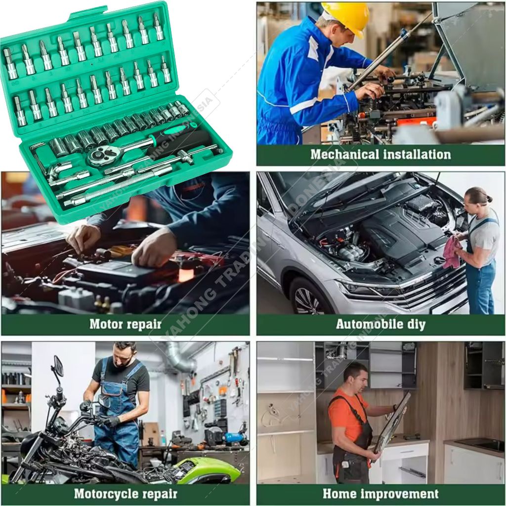WOIRX TOOL Kunci Sock Full Lengkap Kunci SOK 46 PCS in 1 Set Socket 1/4" inch Socket Tool kit