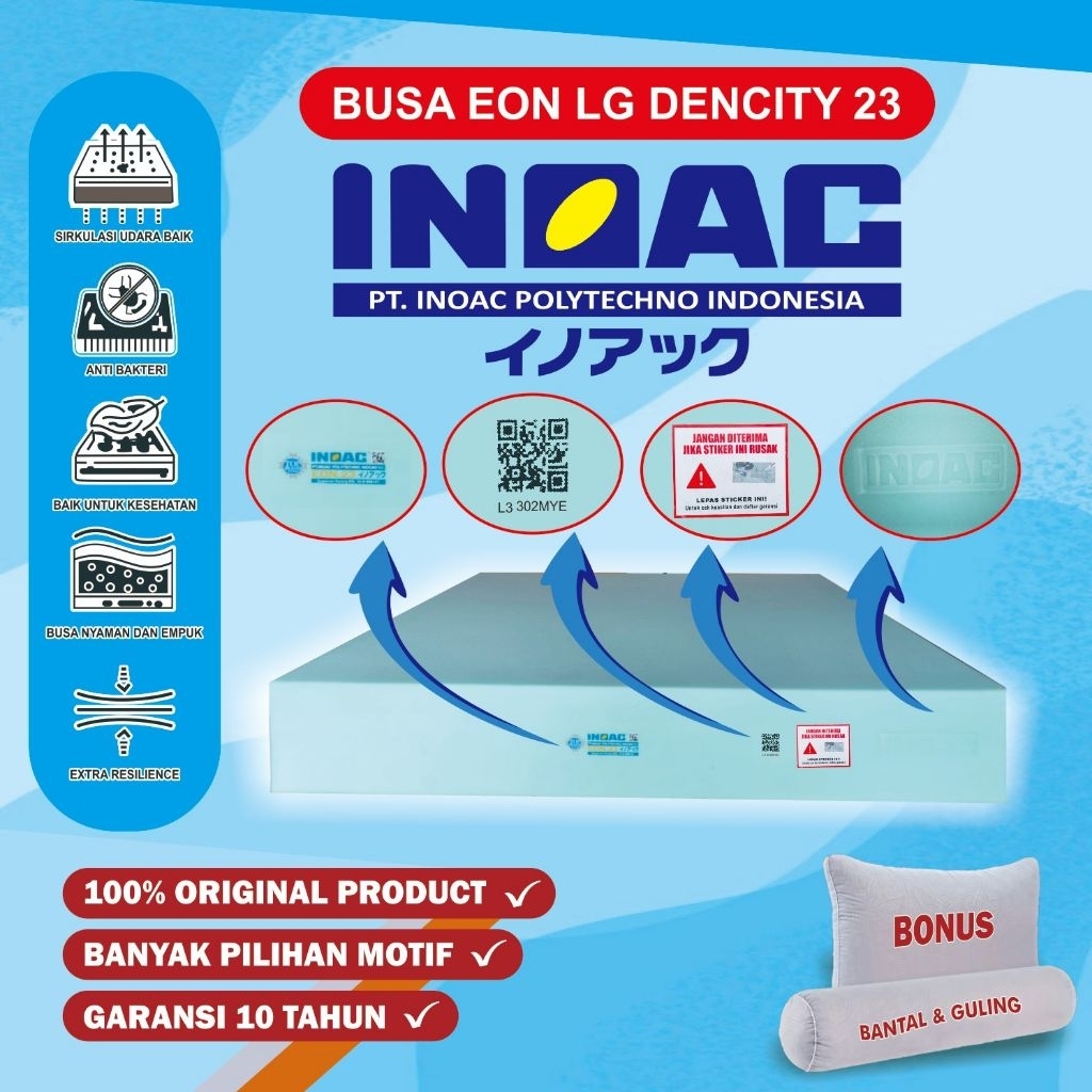 Kasur Busa INOAC 200x200x30 EON LG D23 ORIGINAL dengan Stiker Bare Terbaru Garansi Anti kempes 10 Tahun Termurah