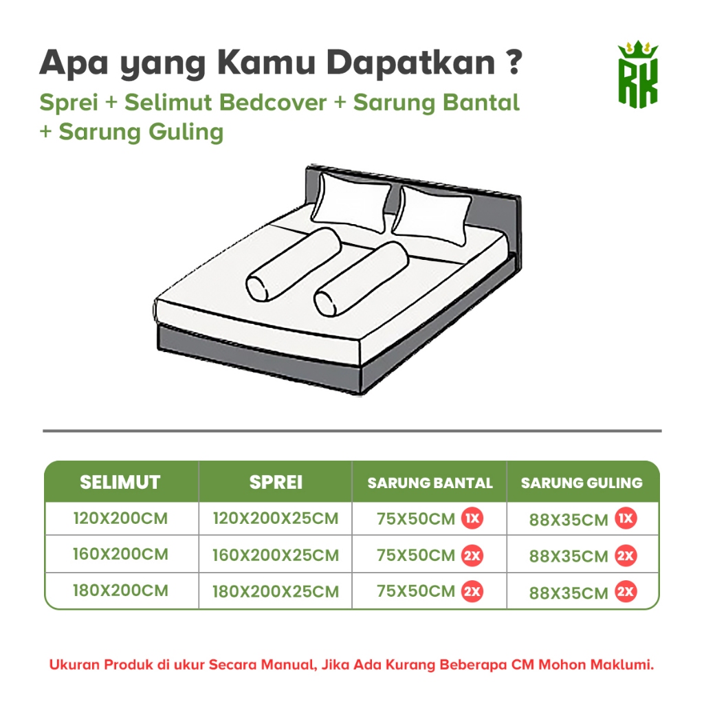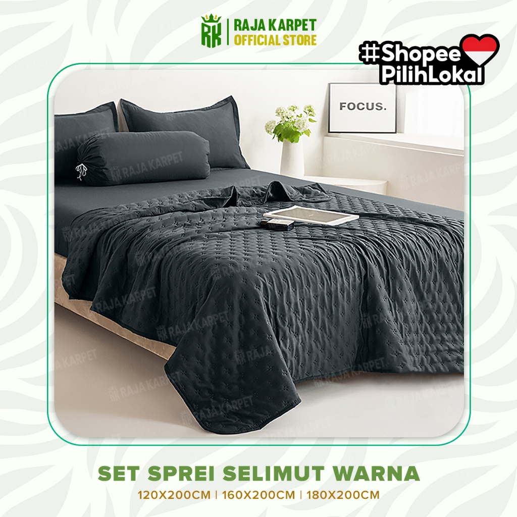 RAJA KARPET Set Selimut Sprei Jepang / Sprei Set Sarung Bantal Guling & Bedcover Polos Premium