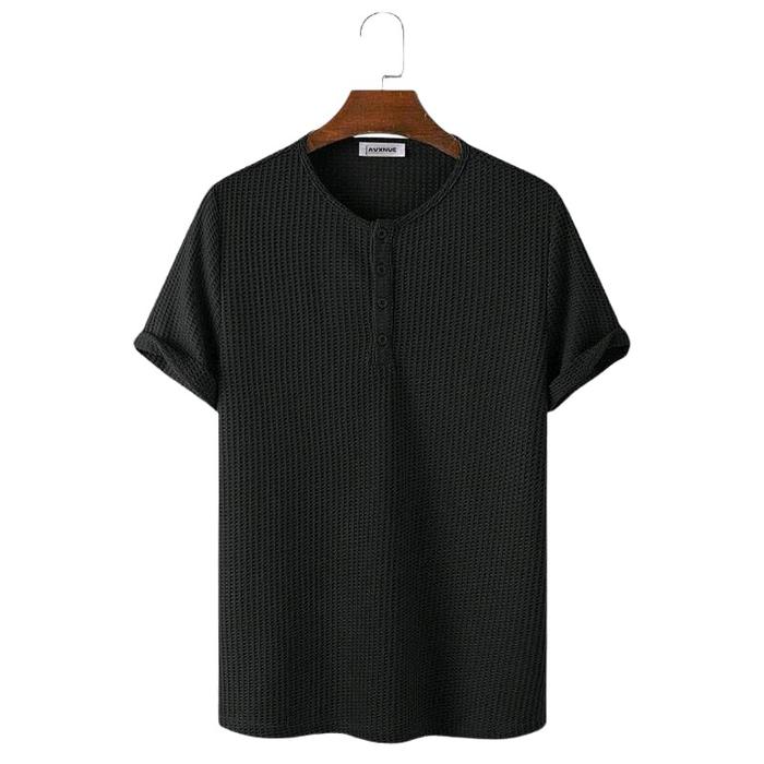 Paket Hemat 3 Pcs Kaos Henlay Polos Pria Bahan Wafle Premium Lembut - Kancing Mayhem - Hitam Crem Denim, M