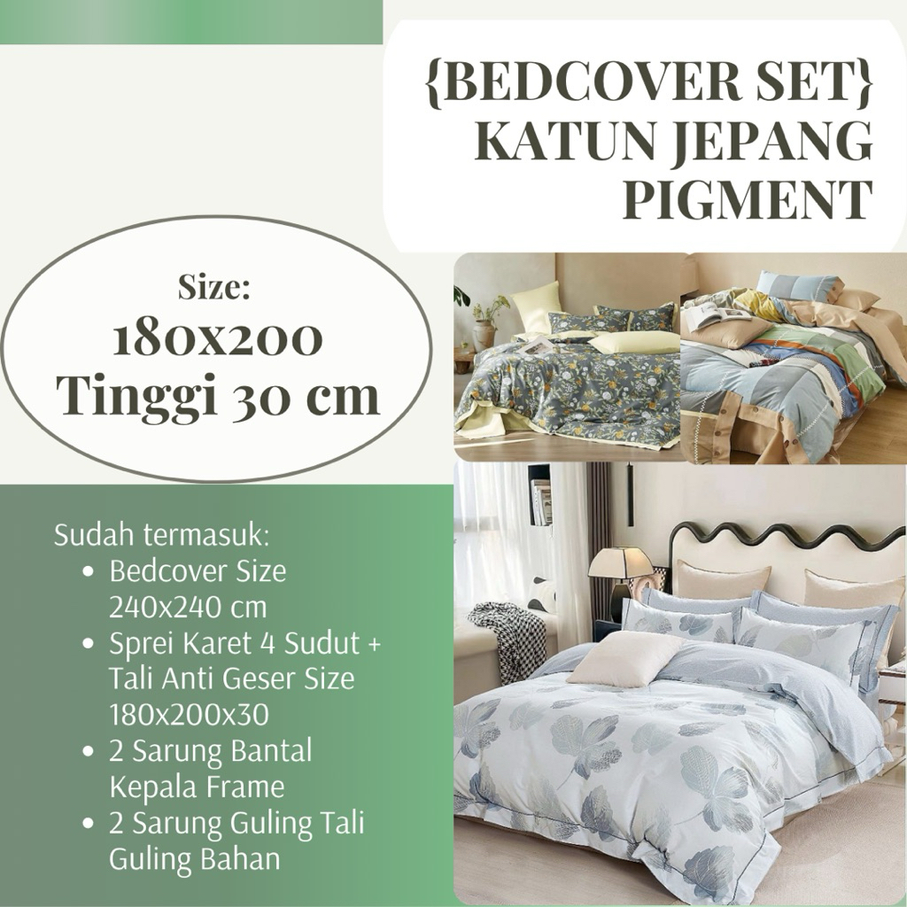 FORTUNA INDAH SPREI - Bedcover Set + Sprei KATUN JEPANG Uk 180x200 Tinggi 30 cm 100 PERSEN Cotton Original