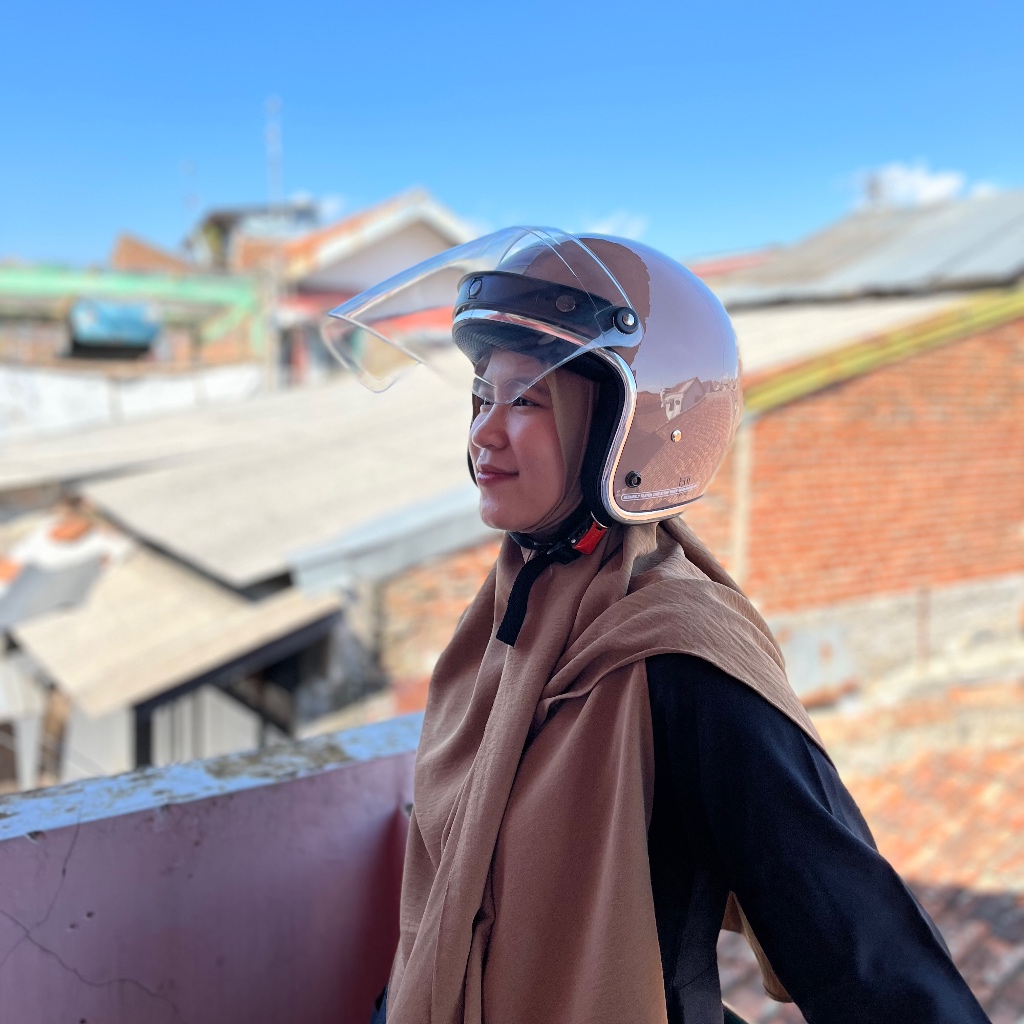 Helm Bogo Dewasa Pria Wanita List Chrome Kaca Venom Flat Retro Premium SNI