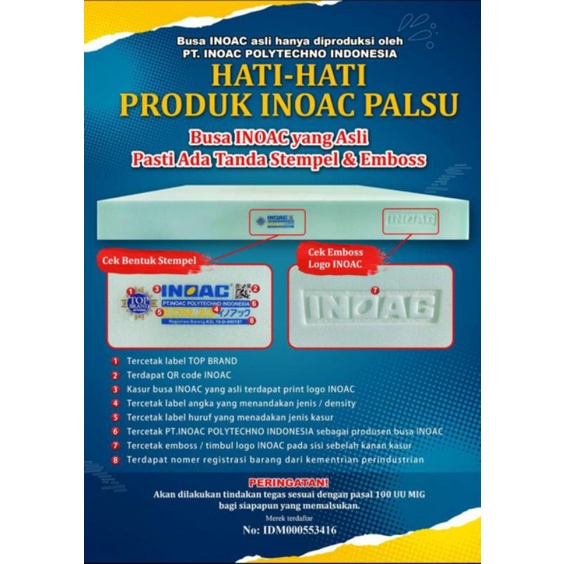 Kasur INOAC semua ukuran EON D23 Garansi 10 tahun tebal 30cm-5cm termurah