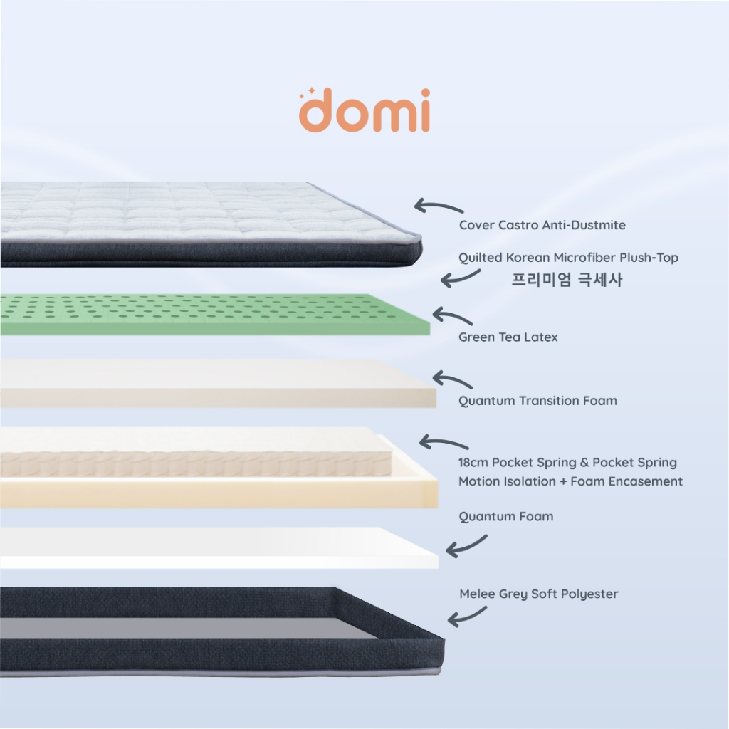 Domi Plush Hybrid Mattress 28cm / Kasur Premium Pocket Spring Greentea Latex / Mattress in a Box