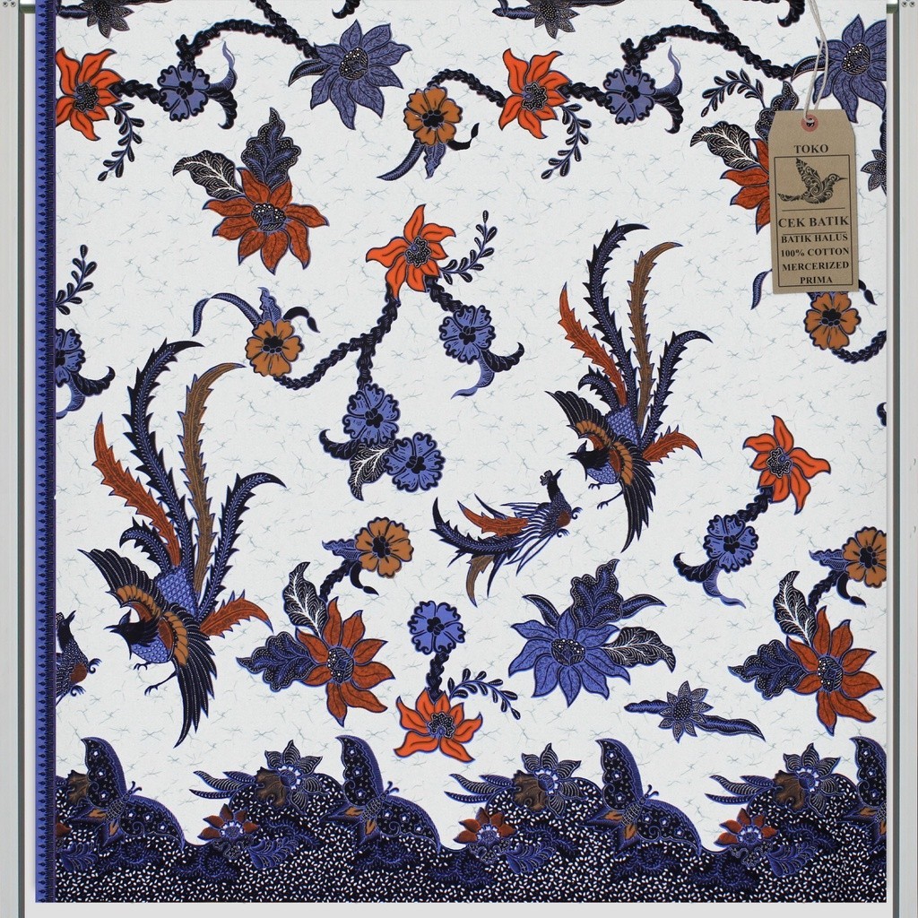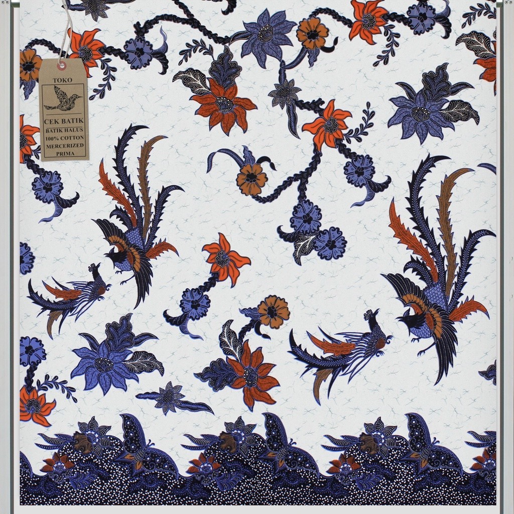 kain batik Motif Unik Spesial Burung Bunga Gradasi Gading Putih v6