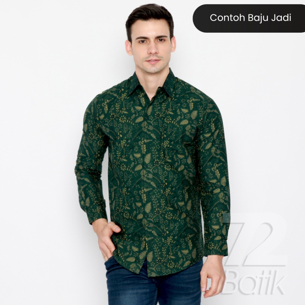 KAIN BATIK PREMIUM Bahan Katun Motif Kembang Setaman Warna Hijau Ijo Olive 727339 Cap 72 Jarik