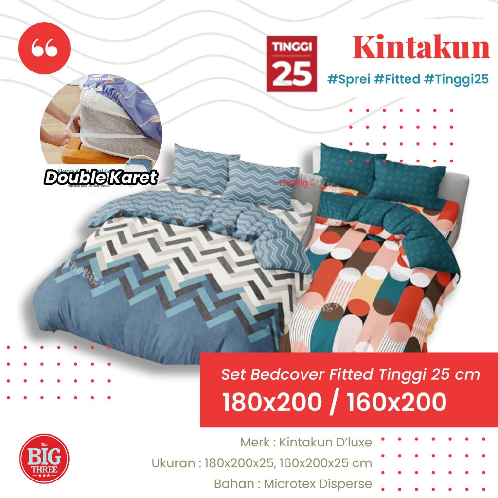 THEBIG3 Kintakun Set Bedcover Sprei 180x200 160x200 Tinggi 25 cm Dluxe Double Karet Tali Guling Pas